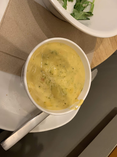 The service here was the best and the staff is so nice. The restaurant also seem pretty tidy what I am upset with is what a joke Panera bread has become. I have not eaten here in a very long time. Are used to love this restaurant. I love the healthiness. I love the options but the fact that I just went for a small warm supper for my family & Purchased 4 bowls of soup, a single sandwich and a small cup of macaroni and the bill was $62 DOLLARS BLEW MY MIND!! The portion sizes were TINY the food quality that (i used to be something to look forward to) now looked like sizes of something off a dollar menu from BK! Not only were they small, they were skimpy and more processed that it EVER used to be and the bread wasn’t even wrapped it was just ripped Off and thrown in the top of the bag I was completely disgusted appalled and upset. I don’t know about you, but I got a French onion soup for my mother. when you order a French onion soup, it’s supposed to be a French onion soup topped in croutons and covered in provolone or Swiss cheese. Their soup tasted canned and had MAYBE, (this is not a joke or an exaggeration at all) but it had again, MAYBE, a HALF teaspoon of some cheese product that didn’t even melt. Im serious. HALF TEASPOON NOT tablespoon.. if they’re going to charge $10 for maybe 6 ounces of soup that taste like the inside of a can, the least they can do is at least make it look like a decent cup of the way its supposed to be served. Im not even going to rant an bout how disappointing everything else food wise was. And again. The staff was wonderful. I feel Horrible for them. I’m sure they get paid next to nothing and they’re only making the product the way they were taught to. The franchise Panera absolutely disgusts me and their markup is absolutely horrifying. I will never eat at this chain, nor my family as long as I live that is a promise. what I show in the picture here is the only bit of cheese that was in that soup. Me nor my mother would eat it. any cheese that does not melt is not cheese. PERIOD.. it’s only time before Panera is caught just like Subway for making things out of rubber and sawdust and everything else that is not edible nearly just to make a profit if they were a cheaper restaurant sure I can understand it because the FDA allows it, but it just took me an entire day to pay for four bowls of soup and a sandwich as a treat for my family. that is a joke. The only reason I am even giving this restaurant one star for food is because the food was edible didn’t even have any taste. It was edible. I apologize for sounding like a rude person I NEVER write reviews but this restaurant is a complete rip Off and taking advantage of the failing economy and the people that work for them and it makes me absolutely sick to my stomach....