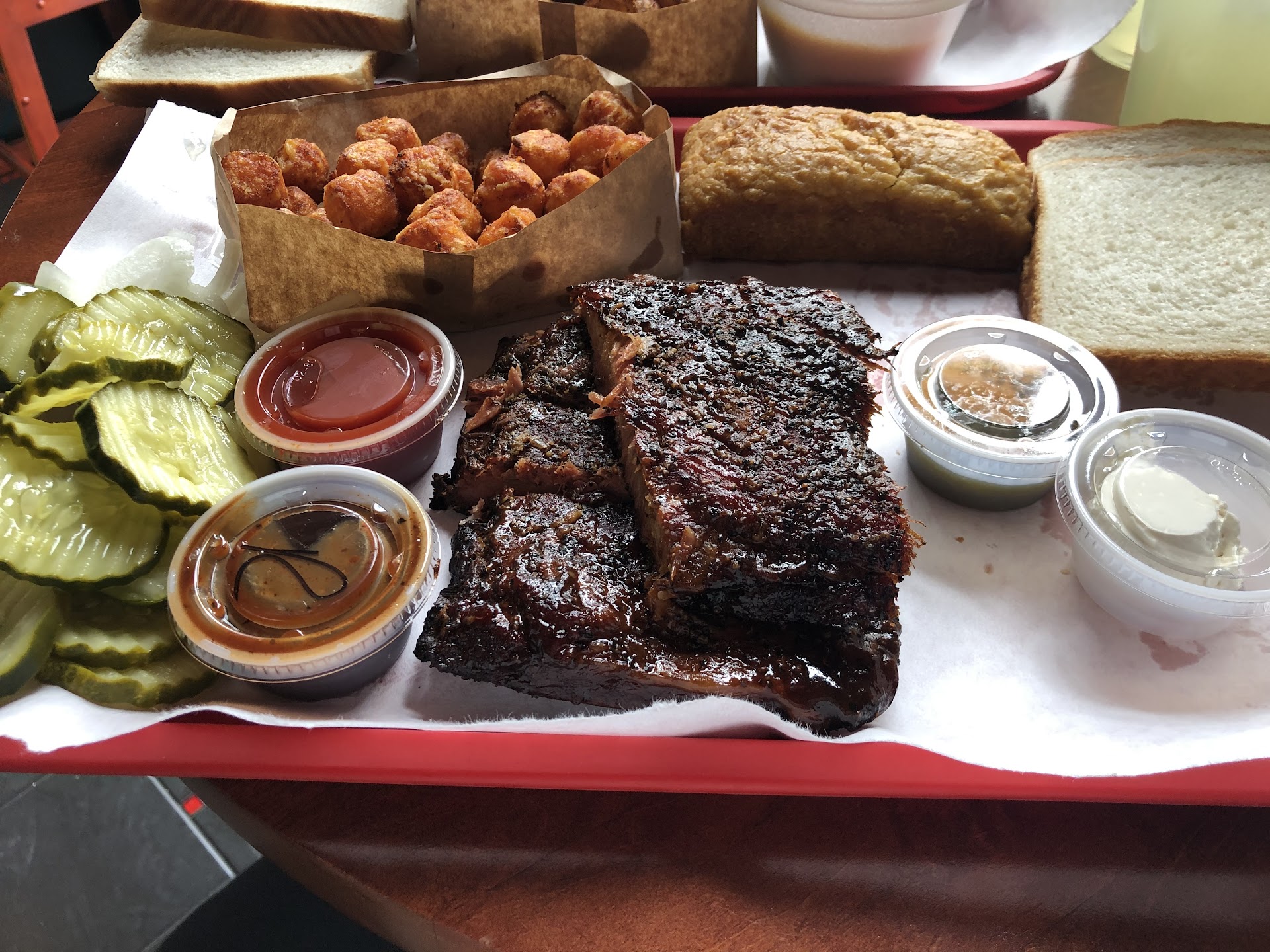 Read moreTexas BBQ, yes, but overpriced and somewhat under-delivers. We tried a large plate so as to get a little variety. The all-important brisket was dry, not to a bone dry, but certainly not fall apart in your mouth as good TX BBQ Brisket should be. The sausage was flavourful, but extremely fatty. We couldn't finish it between the two of us. The fries were amazing, unique. Corn bread was solid. However, that "large" plate with 2 sides and 1 soda was over $30. That would have netted me a good bit more in the Lone Star State I can say from experience. The essentials of the restaurant were good...good location, fun signage, you can taste the smoke in the meat... but the execution was not up to the standard I'd expect from TX BBQ and the pricing was...