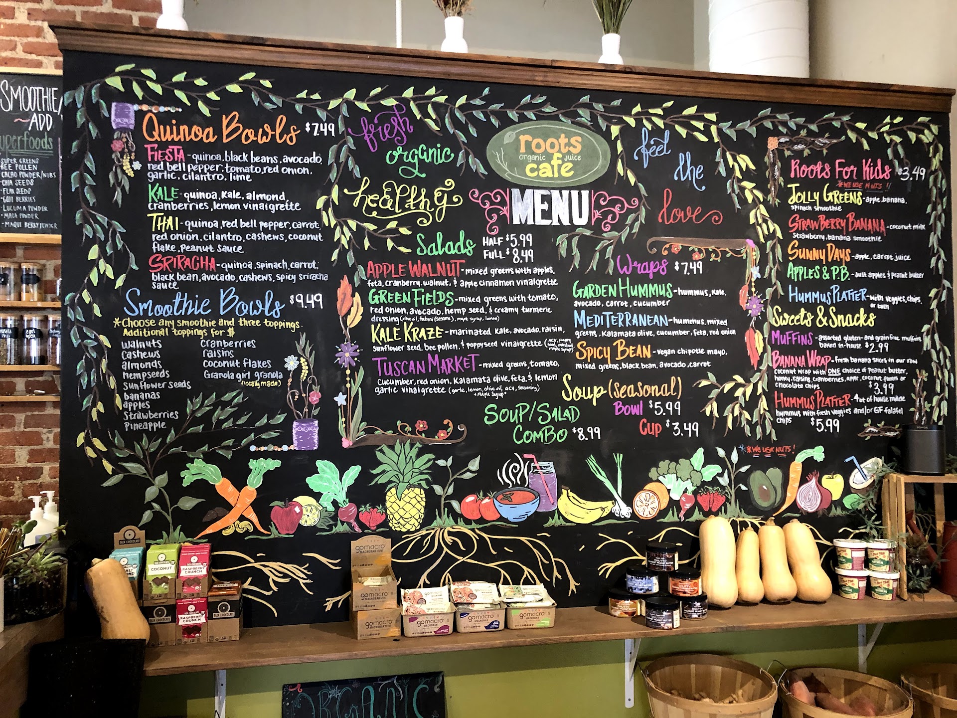Read moreLOVE Roots! It’s definitely a go to vegan spot for me in Valpo. It has a great atmosphere, with split level dining and a small one seater bathroom on the lower level. To my understanding, they make everything fresh and in house and you can tell as soon as you take your first sip or bite of what you ordered! You can also see the fresh produce they use because they keep the refrigerators across from the register.