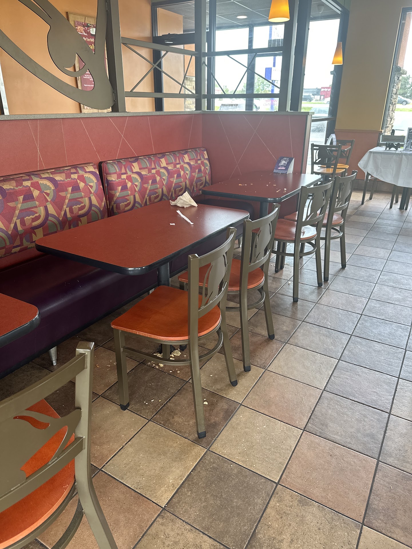Read moreIf it wasn't for the food being hot. The experience would have been a 0. I waited entirely to long for my order to be taken. It wasn't busy. As a matter of fact, I was the only customer in the dining room.. 2 employees were arguing with each other out in the open. Then the manager chimed in as well, and all 3 were arguing. My order took a minimum of 15 to 20 minutes to make, as other orders in the drivethru taken after mine went out the window. I found out that employee who was supposed to make my order. Got pulled in the office, and no one took over until I started getting upset. This was the worst experience I have ever had at a Taco Bell. Lack of respect,lack of discipline, and no common sense. I will not be back. Fast forward 2 years later, I didn't think that this would get any worse. Aside from no greeting when you come in the door, no one takes any orders no matter what. You have to order from the kiosk, which no one will help you with. My taco shells were all smashed when I got my order. I came up to get them remade, and 2 employees just stared at me like I was bothering them, and neither of them asked if i needed help. Another employee was rude by the way she reacted when I asked for her help. I got them remade but received a half-hearted apology from the guy who made it. There is no customer service, and half the tables were wet from being wiped with a water sopped rag. It was gross. I don't know why I came back to this Taco Bell. Because this was another horrible experience. This time, I...