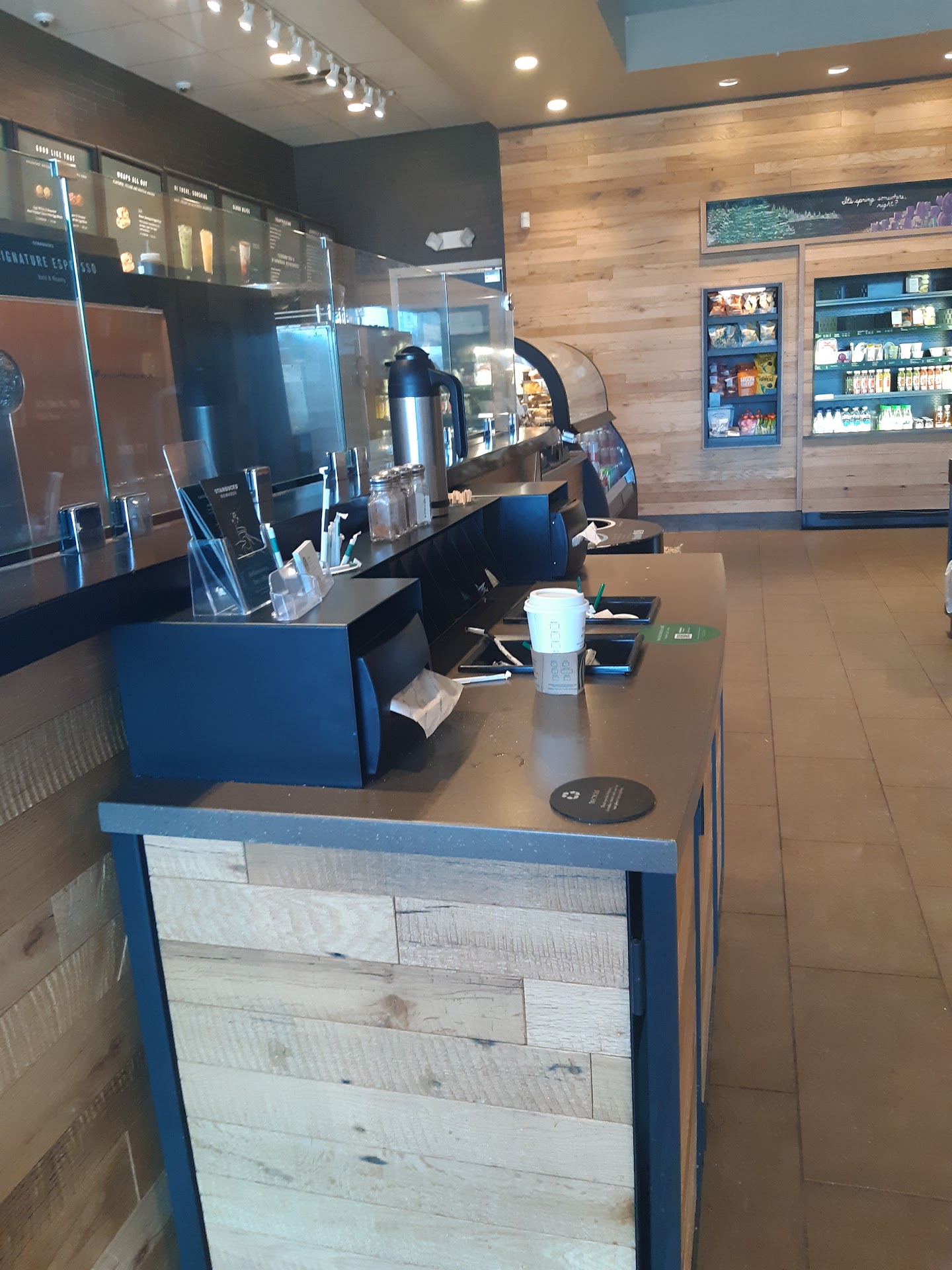 Read moreMy wife and I stopped into this store on the evening of March 16, 2019, with the intention just to buy some bagged coffee for home, but we both decided to get a drink as well. There was no line, about 3 people sitting at tables already served, and three employees (one in the back doing something else) when we arrived. A mildly friendly employee took our order (tall flat white and a tall vanilla latte). After she took our order, the person who I believe was supposed to be the barista did nothing but talk on her phone, having a personal conversation, for a few minutes. Didn't touch our order, or even look at the printed ticket. About 10 minutes after our orders were purchased (while my wife and I stood by idle), a drive through customer ordered their order (we could see the action since we were standing 10 feet away) and the barista decided to make their drink before ours. It was truly unbelievable. My wife and I stood there like zombies. Both workers ignored us, made other drinks purchased after ours, and finally about 15 minutes later decided it was time to make ours. I am the type of person who only makes bad reviews on business pages if it warrants so. This experience at this store that night warranted this type of review. Both workers were more concerned with their personal conversations and personal phone calls on their iPhones, then making our $10 drink orders. Maybe it's time to say goodbye to this...