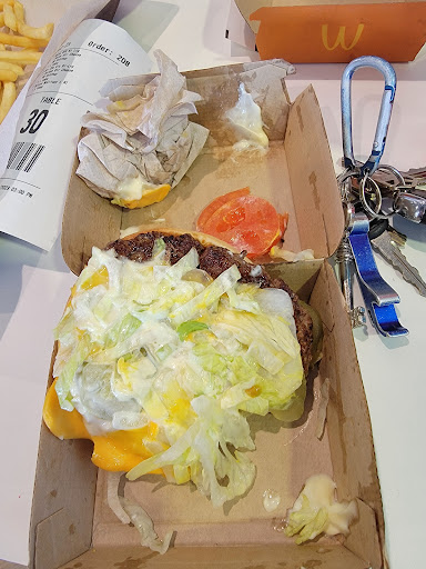 Read moreDo not eat here. It has a kid play zone, but at what cost... Everything was dirty. Tables, bathrooms, counters. Service was minimal. The napkin dispenser was out, so I had to ask for some and got a sigh, as if they were put out. We got deluxe burgers with no ketchup, so they made up for it by giving gobs of mayo that smelled and tasted like it was left out for several days (See pic). I don't get the picture of the other burger, and I should've, but I was mad at the time because it wasn't even fully cooked! When I took it to the counter and staff saw it, they backed away at first, as if it was contaminated. As a secondary thought, they asked if I wanted another. And risk getting more food poisoning? No, thank you! I left the half cooked burger on the counter. At that point, we threw away all food, including the fries. It wasn't worth the risk. On the way out, they asked if we wanted our money back. I said no because I didn't want to be there anymore. I feel like if we had walked out a different way, they wouldn't have even...