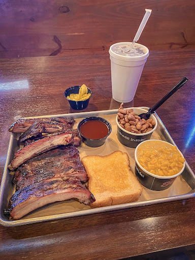 Read moreI got the 3-meat plate with ribs, brisket, sausage, mac and cheese, and spicy potatoes. With a water, it came to just under $19.