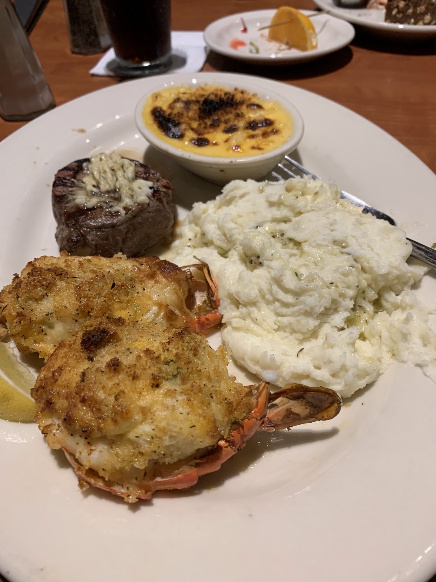 Read moreI don't even know where to start with this review. What started out to be an evening Christmas celebration with childhood friends, we had all been looking forward to going to the Black Angus for several months. When we finally got there, our reservation was 5:45 so we could order some drinks for Happy Hour. We were told by our waitress that we could not order happy hour drinks unless we were seated at the bar. I didn't see anywhere that that was written on the menus. Three of us ordered our steaks med well, When two people brought them out they had no idea who was to get what, we handed the food around until we all got what we had ordered. when two of the steaks were cut into they were very rare and the broccoli was very raw, and not even hot. My steak was properly cooked but not at all hot, my au gratin potatoes were luke warm. We tracked the waitress down and told her, she wasn't really sure what to do and when to the kitchen, my husband went up to the cashier and asked for a manager. The manager came and took our food to the kitchen, then h brought it back to us and although mine was cooked properly it was reheated one one side only. My potatoes were nice and hot. Meanwhile the other person whose meat was cooked ok had finished his food while we were just starting ours. All the manager had to say was sometimes people just have a bad day. I asked him if they use thermometers and he said yes of course they do, he just kept baking excuses for the bad conditions of our food. Meanwhile I ordered a glass of wine. we had also ordered a soda. When we got the bill it was only for the two drinks. That was a good move on his part but I would much rather have paid full price and had a normal delicious relaxing meal. My stomach was in a knot and we packed up our leftover food and left. All of this was the opposite of the last three times we had been there in the last 1 1/2 year. I'm sorry I did not write a review of those times. But just know that everything was just perfect and delicious. We went Aug 2023 with friends for their anniversary, Feb 2024 with my Aunt and uncle, perfect and delicious, we took our teen granddaughters Oct 2024 and they can't stop talking about it. So I have really good reviews to report. It may be awhile before we return though because it was so...