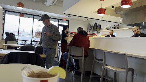 The customer experience was so-so. It was 1 hour before closing and there were 8 tables occupied. I ordered and the staff seemed distracted by closing procedures. As I waited for my order and watched the kitchen, the two staffers on the floor did not check the orders placed on the pickup counter. I saw three orders stack up. One staff came by and took an order to a table. The other floor staff was looking at their phone and moving around the floor. A delivery driver waiting in front, got the guy on the phone's attention and picked up his delivery bag. One lonely burger was sitting on the counter. The staff were not at the front where the kitchen dispensed the food for delivery to the number flagged tables. I thought that might be my order as there were no other customers waiting. As an experiment, I wanted to see how long the order would sit before a kitchen staff called to the floor staff or the floor staff checked the counter for outgoing food. After 6 minutes (fearing I would have a cold burger) I walked to the kitchen window and asked if the burger was for #7. The cook looked at the ticket and said "yeah, here ya go" .