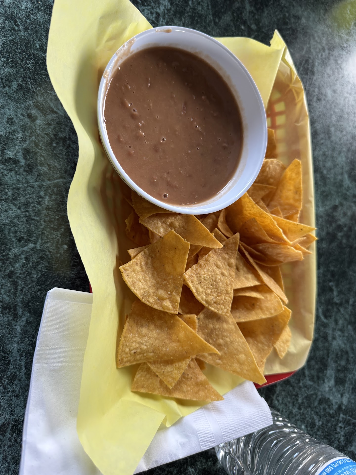 We ordered beans and chips for the table to share while waiting for food to come out but the beans were bland, basic pinto beans. Might have been a little better with some queso fresco on top. My spouse ordered a shrimp fajita burrito that tasted good and my son ordered nachos and he loved them!