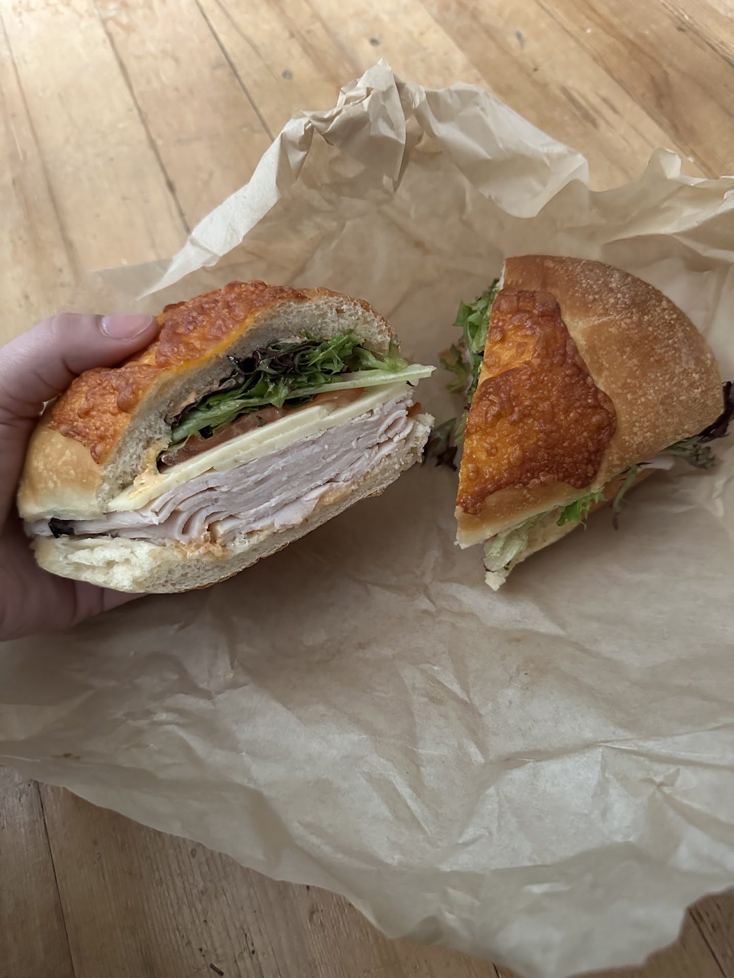 I always enjoy the fiesta chicken salad, the BBQ chicken salad (or wrap), or the ciabatta Italiano melt. Their bakery items including coffee and tea are good, and they have an excellent chai latte. The Caprese salad or sandwich were disappointing, as was the grilled cheese. The grilled cheese was more like dry, warm bread with cheese in it. Honestly, I have not enjoyed any of their cold sandwiches, and I would avoid anything with...