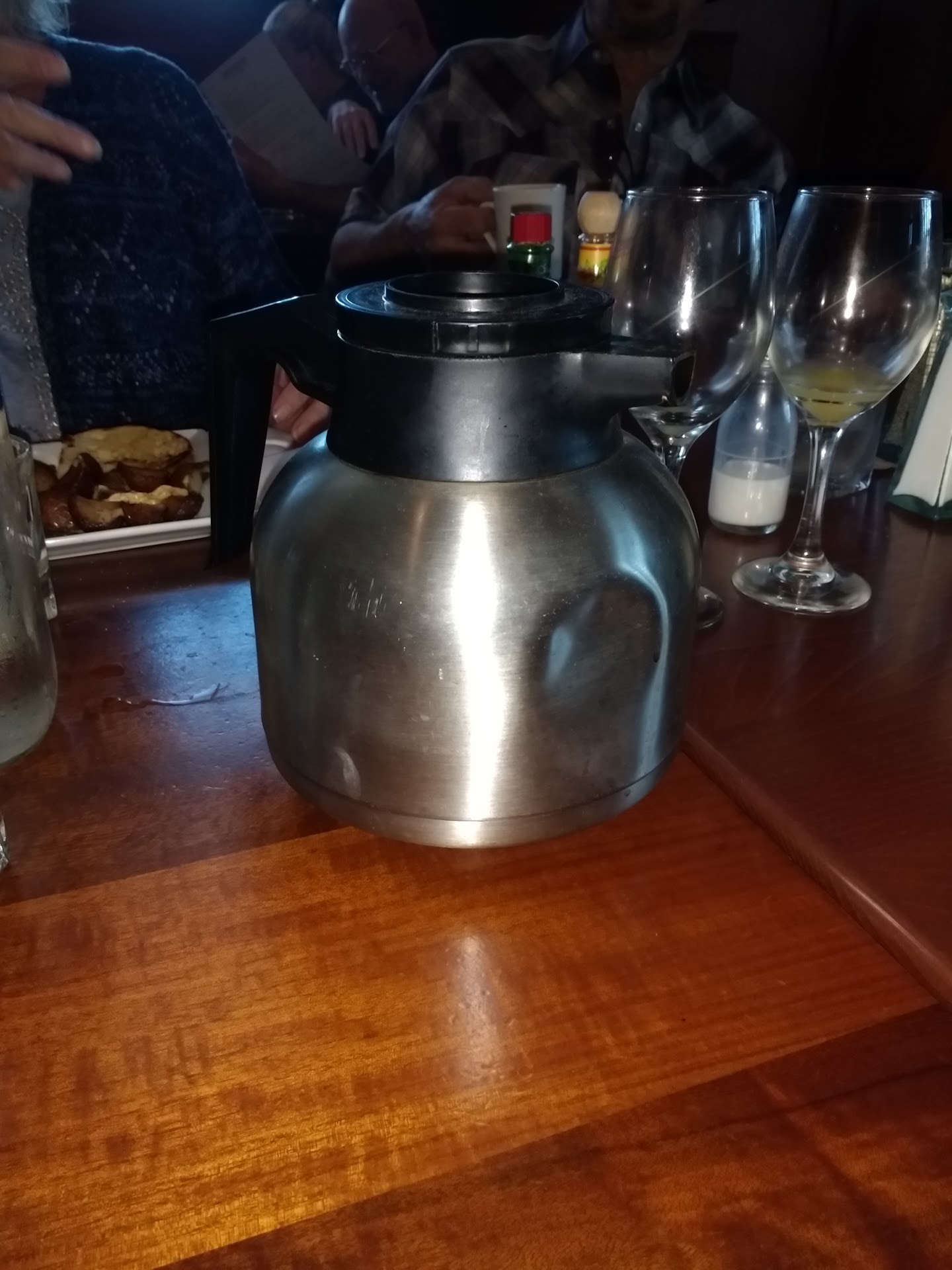 Of the approximate 15 times we asked for water / coffee refills, we got refills about twice. Over the course of two hours. "Hey, can we get more water and coffee?" "Oh sure, I was just going to do that now." 20 minutes pass "Hey, can we get some more water and coffee?" "Oh sure! I was just going to do that now!" "Excuse me, ma'am, we're going to need more water and coffee." "Oh right! I was just going to do that!"