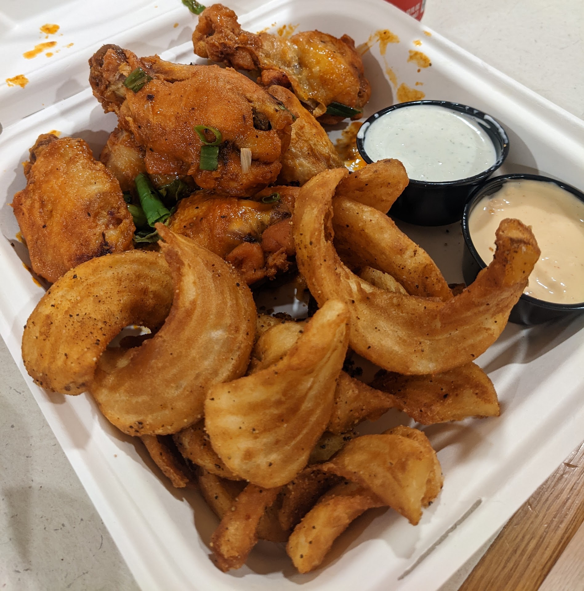 Cons: No cutlery. BYO? No napkins available at table or provided unless asked for. And even then we got 1 napkin per person for messy food. No refills on soda. No change. Generally just not very good service.