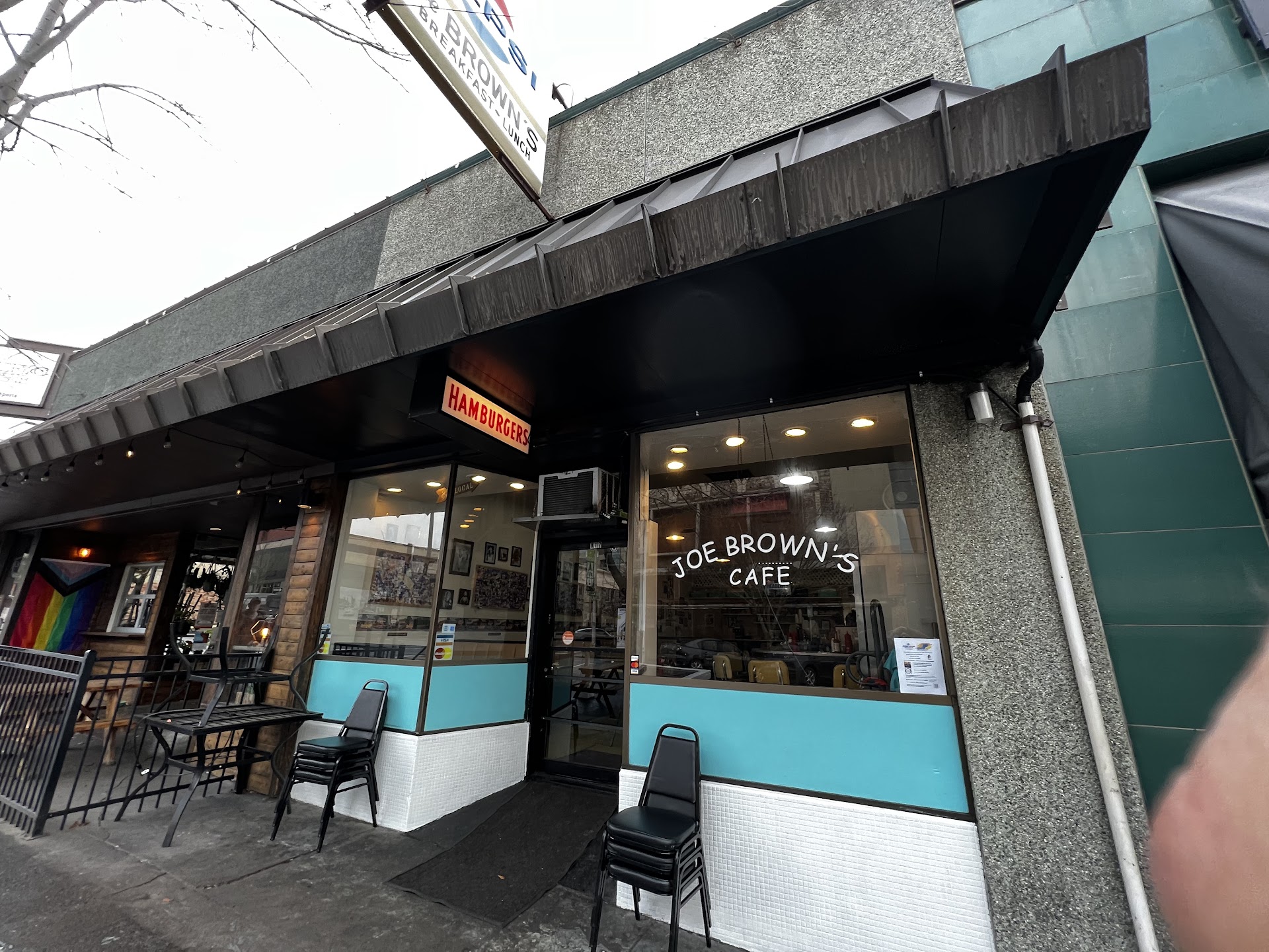 Now the problem with icons is that they tend to be set in their ways like bugs stuck in Amber. The food at Joe Brownâs is dated, the burger was nothing to write home about. The vibe is great, but the execution should be executed. It was uninspired. Boring bun, tasteless standard premade patties, and the tomato bland. Open da box, take out da food.