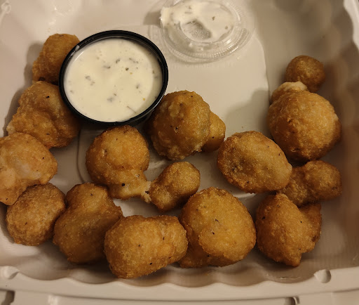 Have you ever had cold fried Breaded Mushrooms? They are rubbery. These weren't cooked long enough. I included a pic. They weren't cooked enough to retain the heat. Without the tip, I paid about $25 for this bland, undercooked, cold food.