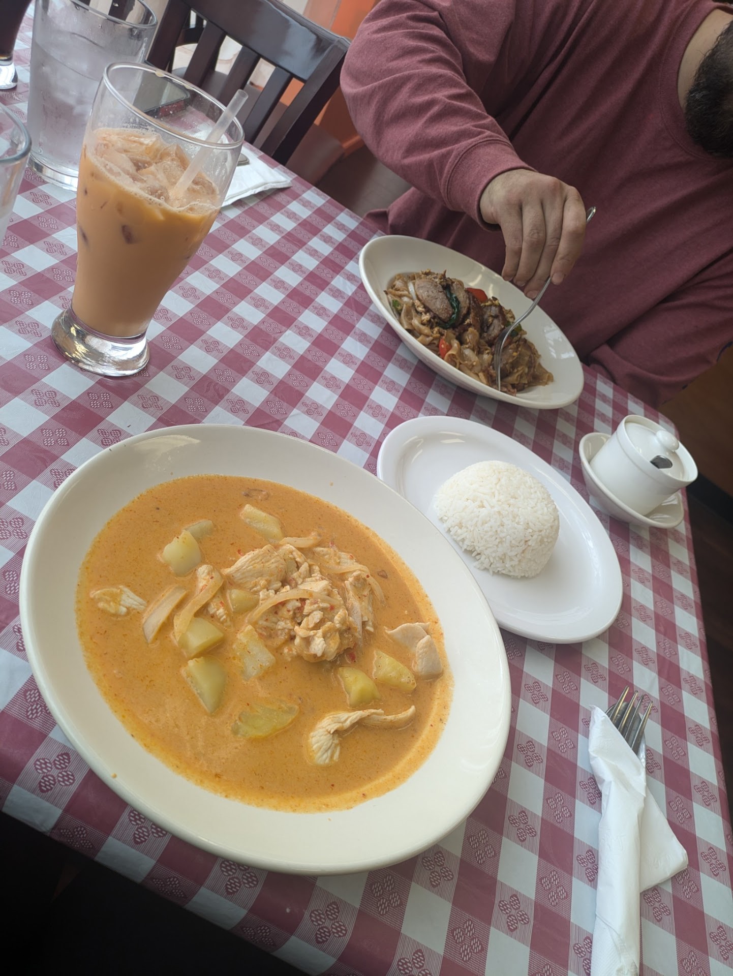 The tai iced tea was great was shocked came in a big glass and very well balanced