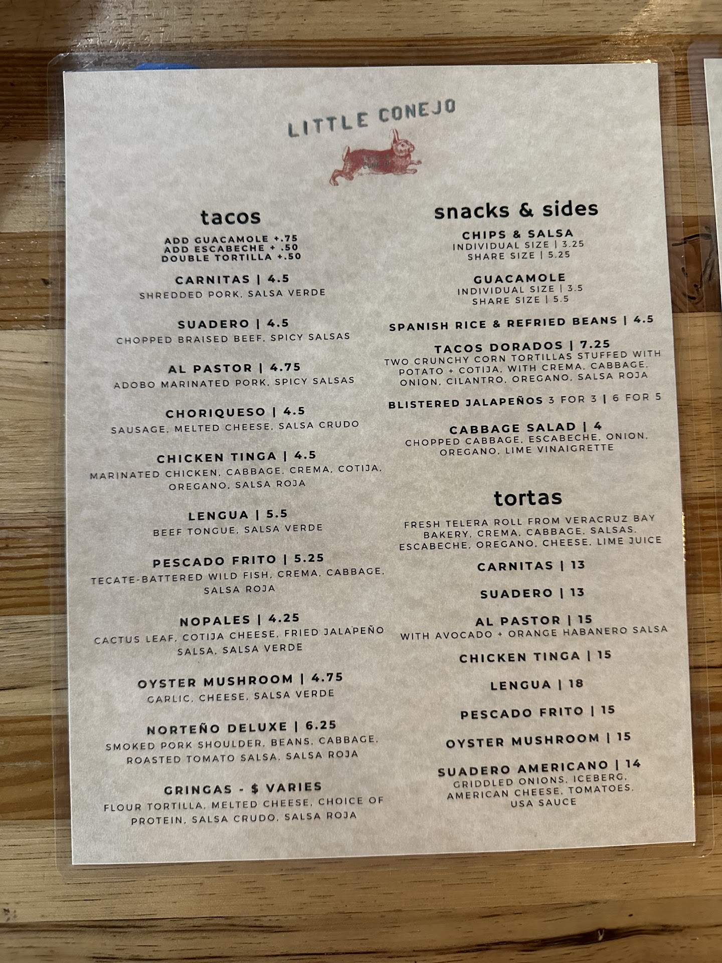 Food: 5.5/5 When you go to little conejo, there’s a chance you’ll find a pair of black socks somewhere in the restaurant. This is because the food blew my socks clean off my feet. I got the chips with guac (share size even though I was alone), a pescado frito taco, a choriqueso taco, and a norteño deluxe taco. The chips and guac were surprisingly good. I mean, I know chips are hard to mess up, but they stood out and I’d bet they are made in house. The guac was also very tasty; simple and creamy and flavorful all at once. I got the share size because I was scared I wouldn’t have enough otherwise and I ended up taking it in a box with me because it was an ample portion. The choriqueso was the taco recommended to me, and it was my second favorite. The flavor was complex and everything complimented each other; I really liked the green salsa they put on it. The pescado frito was a little underwhelming. It felt a touch under-salted and the fish itself felt perhaps a little overdone? It was still great and was far from the worst fish taco I’ve had, but if you’re a fish taco freak like me, this one might not be your favorite! However, the norteño deluxe.. wow. I mean just wow. I was sad when I started eating it because I know I won’t be in Vancouver again very soon and I wished I’d ordered all three of my tacos as norteño deluxe. It was creamy and meaty and juicy and the flavor melted my mind while I was eating it. When I took the first bite, my inner monologue started sounding like I had a stroke. Anyway. Pretty good taco if you ask me.