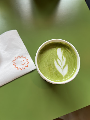 The inside of the coffee shop has plenty of seating on two levels and is connected to their sister shop called Ranch Pizza. They are both owned by the same owner so you know they’re both good! When I came in, I tried their classic matcha latte with simple syrup which did not disappoint. It was a perfect ratio, just enough matcha and not too sweet. Truly will come back for just that matcha! I also tried their classic vanilla latte which was also very good and mild not too sweet. But I’m more of a matcha gal so I can’t really rate the coffee too well. I also tried their seasonal drink the blood orange matcha and wow it was amazing!