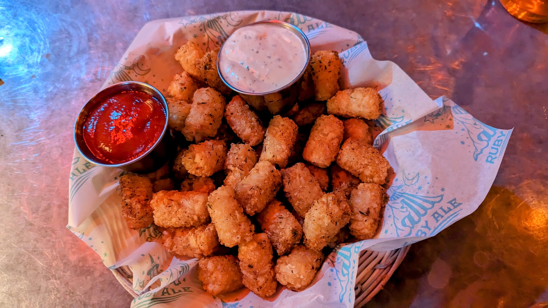 The tater tots. I cannot go wrong with the tater tots. Such a sweetness about tater tots that you may recall as a child. Well, I do. It chokes me up sometimes to be able to get the tater tots like you can at McMenamins and no where else.