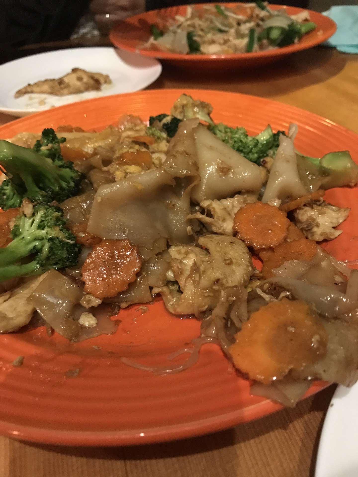 I ate here back when it first opened and it was ok. A little pricey, a little distracted, seemed like they spent a lot of time visiting with each other, kind of clannish. So I thought, self⦠letās try it again and see if the boat is floating any higher. Getting there is a little strange, I pull around the block for the great parking area on the side of the building and there are homeless encampments all along the back way and Iām afraid itās a pig sty back there. Hesitant to leave my big ugly truck unattended. When I walk in, there is a strange smell, I think at first itās like old burned oil, itās not the best beginning. I get the Kaopoon Nam Gai, a red curry with noodles and it comes with heaps of shredded chicken and mint leaves. Pow! It hits me right in the kisser! This smell like the chicken is rotting or socks or something and I realize itās a strong fish sauce smell. Ah⦠thatās what I smelled as I walked in. Takes me back on a journey through the markets of Thailand, which are not smells for the faint of heart. Iāve had hundreds of bowls of pho, curries, Tom Yums, Tom Ghas, and Ramens and Iāve never been hit with such a strong odor. Now itās not that I am adverse to fish sauce, I use it in my own cooking, but this is unusual. I know that given a chance, fish sauce will usually lose some if its funk and transform into a mysterious umami, so I stir the bowl until the smell dies down a bit and itās honestly not that bad. Itās a red curry soup and there is zero heat which is also a surprise. Perhaps more chicken than Iāve ever seen in a soup dish. Huge muscular glass of iced tea, attentive service, nice environment. Iāve been hitting a lot of Asian places recently, kind of a personal quest for a perfect soup. Like Ahab sailing the sea looking for the White Whale except I want to worship it when I find it, not harpoon it. There is a list of like, 5 places that nearly blew my socks off but unfortunately, Nom Nom is not there. Itās a great location and would be perfect for after movie dining, but I think weāll opt for a little travel and less,...