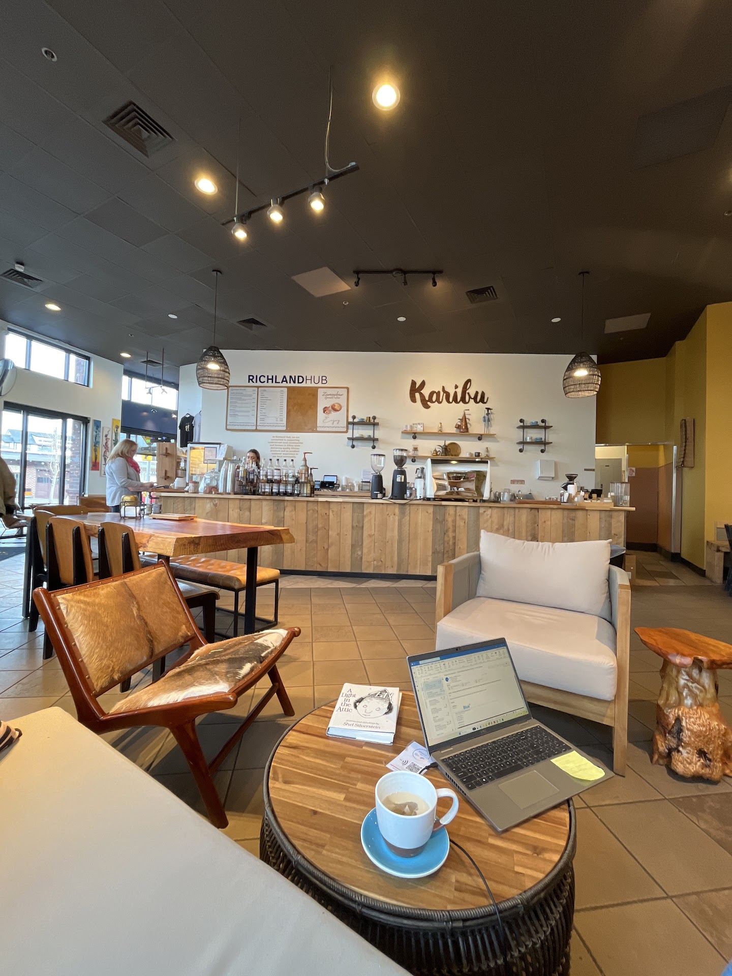 Admittedly, we first went here because Bleu Door was out of espresso. We had talked about trying Richland Hub anyways but Bleu Door not having espresso is what pushed us to try out Richland Hub and let me tell you- they are now one of our usual coffee shops. I love the vibe there and the espresso is SO good, I love the taste. The barista's are super chill and nice as well. We got their white chocolate mocha with oat milk and we have tried the white chocolate raspberry scone. In my opinion, the scone was not the best I've ever had (just being honest) but it is still REALLY good in it's own respect. The white chocolate mocha is def a fav of ours wherever we go, you just can't go wrong. But again- their espresso is so so good and I can definitely differentiate it from other places espresso. I love that it's not to sweet, and instead just the perfect balance between having that espresso taste as well as whatever other flavors you may choose. I def recommend checking this place out if you haven't already, we will be spending plenty of money here...