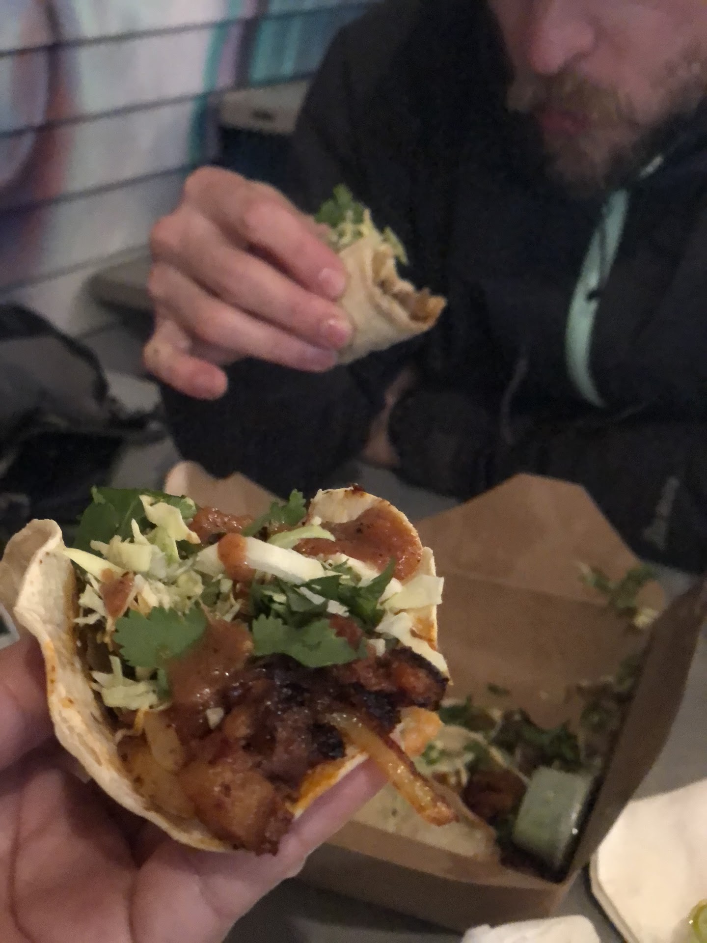 The draw to this taco truck is its convenient location next to a brewery that serves most just drinks. If you are drinking a lot you will be excited to notice the large size of the burritos, which will initially justify the price; but you may overlook they are only large because of lots of rice/beans filler. Good place for...