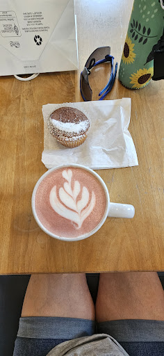 Read moreThere are few things in life I like more than sweet baked goodies and coffee is definitely on that list and Thatcher's coffee has both of those items and some more - so needless to say I loved them . This place is cute and is very conveniently located with a host of other stores and restaurants , so you run your errands and get your coffee at the same time .Its a woman-owned business, and there were more than one pop-ups going on when we visited .The vibe is very cute and they had a giant wall with chalk art on it - really Insta worthy . We got the Lavender cardamom latte and the golden Orange turmeric latte along with the Pumpkin and caramelized apple hand pie and the almond flour muffin . Everything tasted good , the drinks were a little sugary even though I specifically inquired before I ordered if they were going to be too sweet .Lots of seating and very good natural light in case you intend to do some work or reading . It does get loud though so not the best place to work if noise bothers you .There is lots of parking...