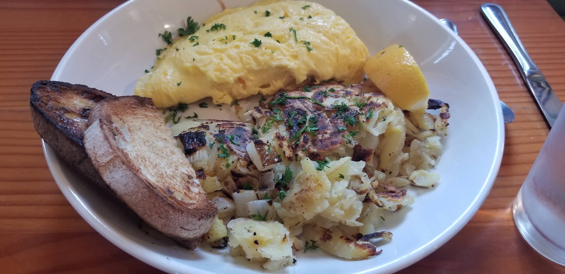 Cons: the food is bland - we had to season everything pretty heavily. Perhaps because they cater to an older clientele who generally need to watch salt intake?? I got the veggie hash and the veggies were cut way too big so they didn't cook all the way through or get a chance to caramelize.