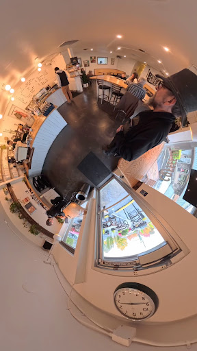 There is music in the main area, but it's never obnoxious, it fits the vibe. There's also outdoor picnic tables if you want some sun. Service is great, not over the top cheery like you'd get at a drive-in or starbucks, but the baristas give you a moment to choose from the menu and are very sweet. I almost don't want to let people know about this place because I want it to be my own little...