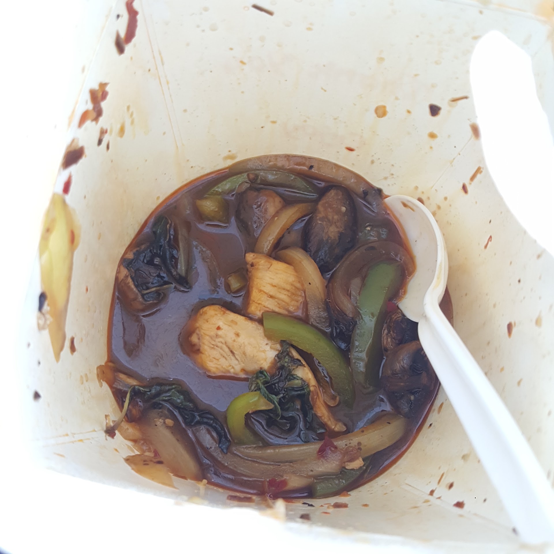So, I decided to tag along with my other 5 coworkers who were actually able to put in their orders. We arrived at the restaurant to find a table with 5 chairs and their food sitting out in the open, unsupervised...which seems totally unsanitary and pretty risky to me?? The waitress/hostess saw we arrived but did not bother to assist or acknowledge us in any way. We had to drag a chair over from another table so I could sit. She did not offer me a menu, but instead flat out ignored me. We had to beg for her to bring us water and silverware, which took her 15 minutes to bring even though the restaurant was not busy. You’d never guess how many waters she brought over...(A: 5). We also asked for an extra plate and my coworkers piled bits of their food onto my plate—much to the waitress’s surprise/dismay.