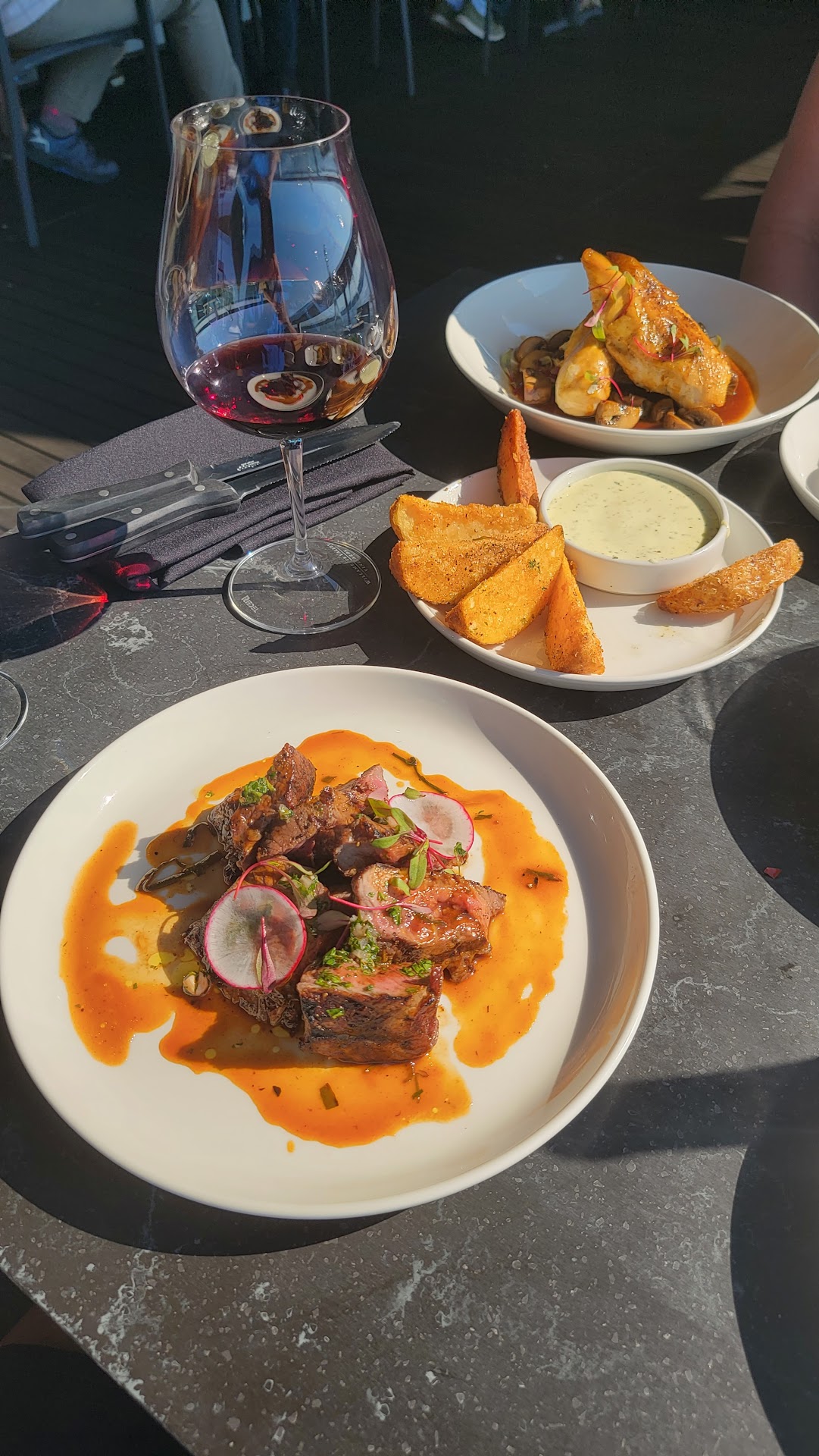 Original review: We were looking forward to visiting WVV on the Vancouver waterfront after having amazing experiences at the main Winery, Lake Oswego and Domaine Willamette. But it just didn't end up that way. First, I called to say we would be 10 minutes late for our reservation and I was instantly put on hold and was still on hold when we walked in the door of the restaurant. When I commented to the hostess (?) she just said, "Oh yeah. We're pretty busy." My call was still blinking on her desk phone. The service was ok, the server was pleasant but not particularly attentive. No one checked to see if we were nembers or owners so we had to have our check redone to correct the charges. (We even had to get the attention of another server to get some salt.) The menu itself was kind of strange, with random selections. And things were brought in odd order, main dishes before things listed as "starters." And, unfortunately, the flavor of the food was not up to the standards of the other three locations. The view is great, but, unless you sit outside, it's really loud in the inside room. Even the decor doesn't live up to the other locations. It has a cafeteria vibe in the main dining area. And finally, not a big deal, but the parking there is awful. At this point, I couldn't...