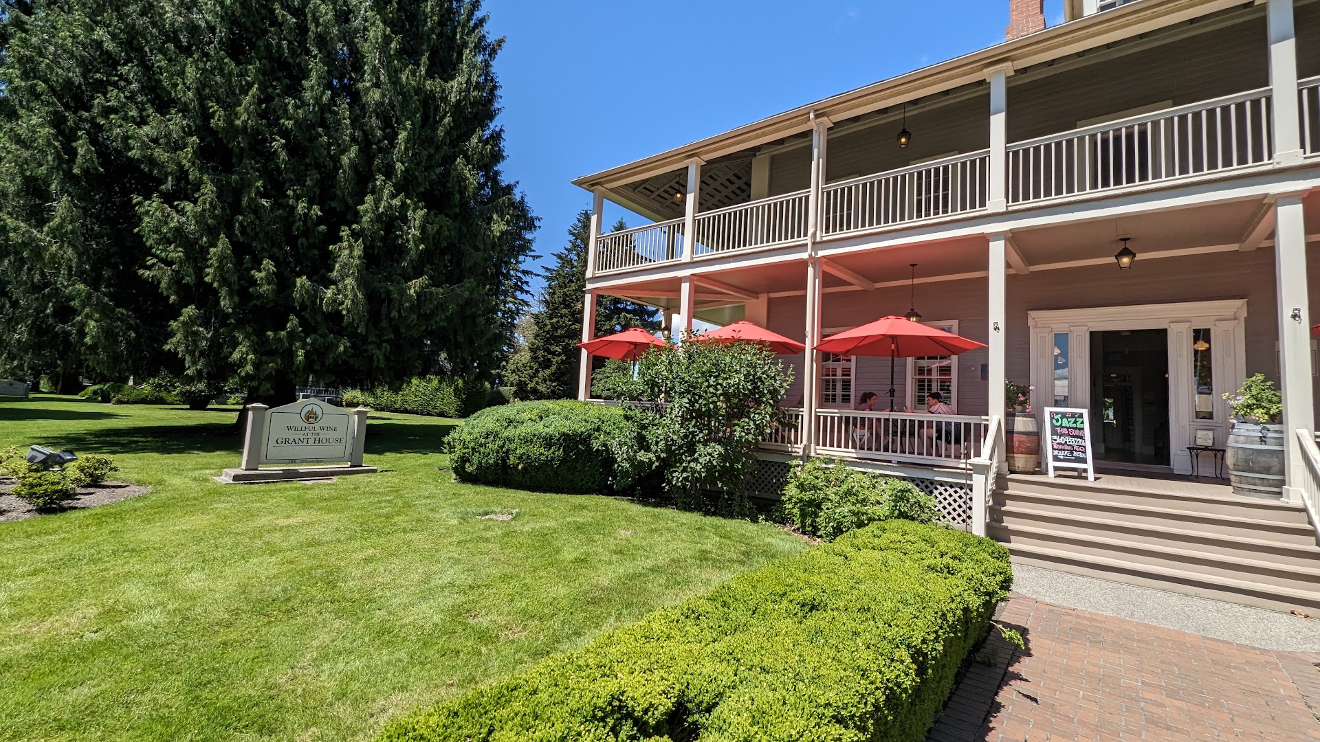 Read moreOur visit today made us feel like we were on vacation, but we were only minutes from home. What a great idea to combine this wonderful winery with a fantastic menu in a beautifully decorated space within a historic home in such a gorgeous setting. After hearing glowing reviews on social media, we decided to stop by today, and it was such a magical visit: sitting on the wraparound porch of the Grant House surrounded by beautiful gardens, trees, historic buildings and a gorgeous view of Council Crest and the West hills, sipping flights of truly amazing wines and munching on delicious nibbles... it's hard to imagine a better way to spend the day. I wish we hadn't eaten before we came, because the menu looked incredible. The wines were incredible on their own, though (we enjoyed an order of fresh bread and olive oil while we drank the wine). Now that I know how good it is, I'm looking forward to coming back soon and exploring what the kitchen has to offer...preferably on one of their live jazz evenings! I feel really lucky to have this...