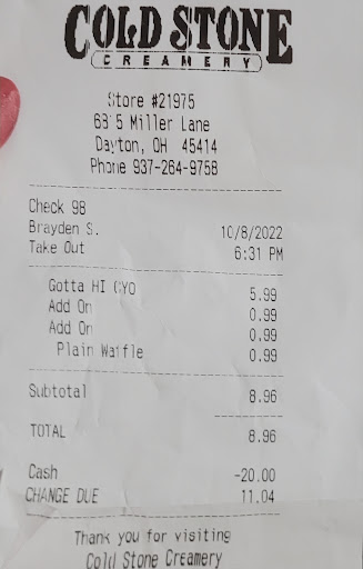 Read moreOrder my daughter a custom ice cream cake 2 weeks before needing cake for her party, I also paid for it the same day that I ordered. I asked for it to be ready at 12 noon when they opened, I arrived late at 12:45 to pick it up. I go to the counter and ask for my cake only to be asked if it could be under another name. The manager returned once again and told me âunfortunately the employee that took your order quit and she didnât tell us that we had any cakes she took orders for.â Sheâs no longer an employee so literally not her responsibility?? Why when she quit dis we not check to see if she had taken any cake orders? Why are we blaming an ex employee and not taking accountability? Iâm sorry we failed at our jobs, let me make this right for you. I was offered a refund, which I did not want a refund with no cake. This was for a sweet 16! You only turn 16 once and they damn near ruined it. She finally tells me she can have the cake ready at 3pm but I have to send someone else to pick it up as my daughterâs party was at 6pm. The person who picked the cake up said they were writing on it as he got there and that I wouldnât be happy with it. The cake looked terrible! It was slanted and the writing was very crooked and sloppy. This was not at all what I had requested. Terrible customer service, the manager offered no empathy for their mistake. No âplease let me make this right for youâ I was given the option to have my money refunded with no cake in hand, therefore ruining my daughters birthday, told I could come back in 2 hours and HOPEFULLY the cake would be done, or offered to pick a premade cake from the freezer out which would also not rectify the situation appropriately. The cake that I received was literally melting because it should have been made and frozen the day prior. Iâm quite upset that it was picked up 3 hours later, so we even gave them an extra hour from what she told me, and it was so sloppily put together. Very disappointed in the overall experience and would never recommend this store. I will go to brown street...