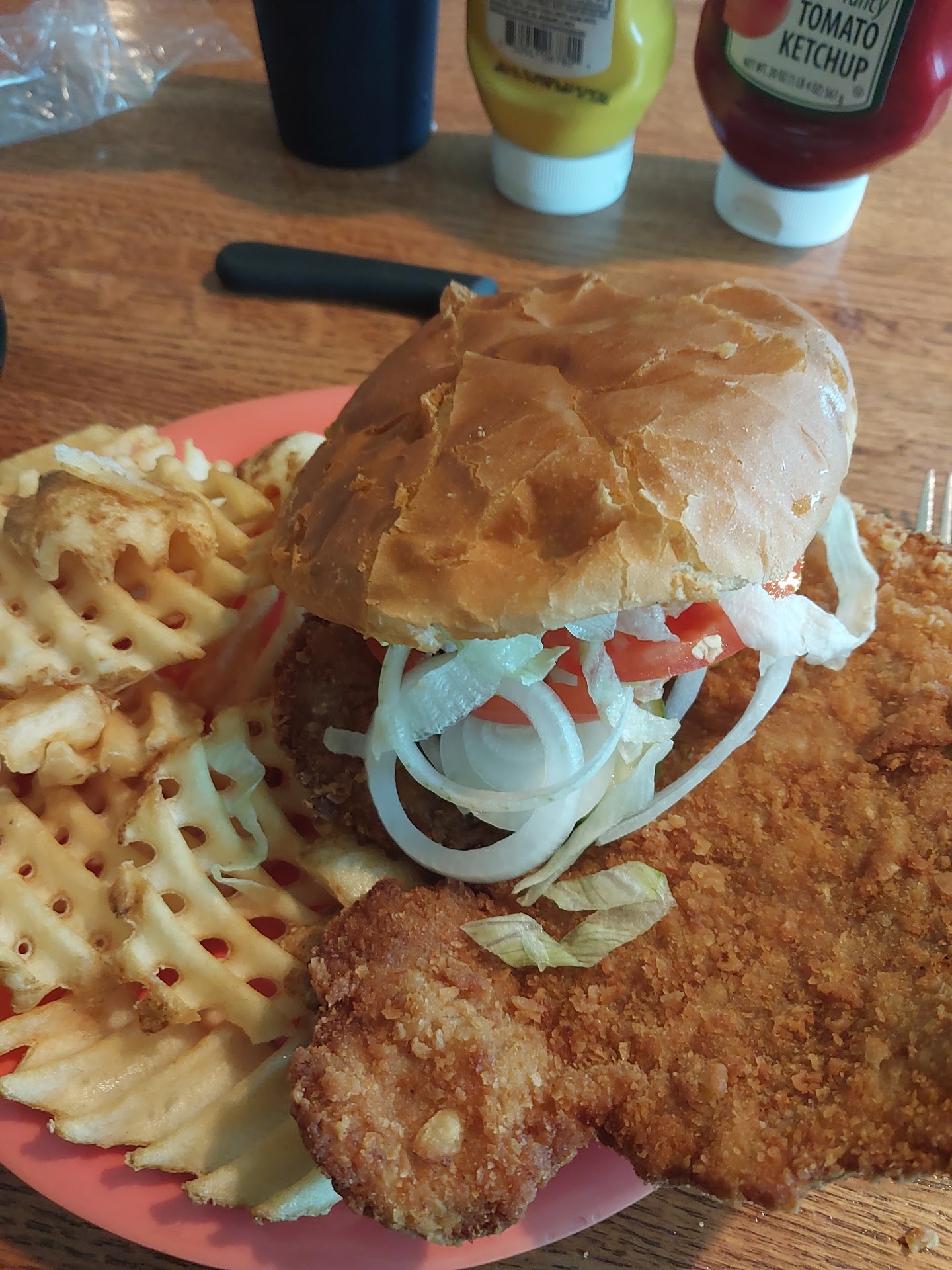 The food took a little while to come out, but it was absolutely worth the wait. The meat was well seasoned and breaded, thick, and juicy.