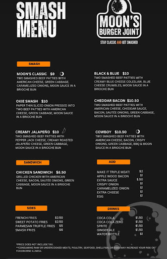 Read moreFirst time going to this burger joint. As a chef myself, I truly appreciate the attention to details such as the crispiness of the smash burger itself. I tried the Okie Smash and the Moon’s Classic, both are absolute bangers and should be tried by any and all burger enthusiasts.