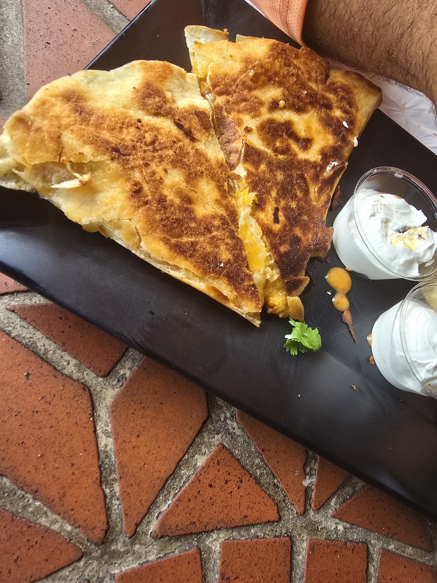 Sin embargo, la experiencia cambió por completo con un detalle que para mí es muy importante: el queso fundido con chorizo. Al recibirlo, noté que estaba completamente pegado al fondo del recipiente y quemado. No era un dorado apetitoso ni un toque ahumado: era literalmente quemado y con sabor amargo. Con mi experiencia como consumidor frecuente de comida mexicana, sé perfectamente cómo debe servirse este plato, y así no es.