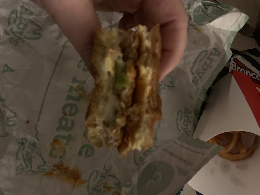 Read moreWe got 3 buffalo chicken sandwiches. My son ate 2, and I ate one. I thought maybe it was just my sandwich that got stuck with almost no meat in the filet because my son didnât complain, but turns out he just didnât want to whine because it is Motherâs Day. There was almost no chicken. It was pretty much just breading. If they got a bad bag, then management should send that bag back and grab a new one that actually has meat in it. If all their chicken came in like that, then take it off the menu until the product gets replaced. Those sandwiches are $6.99 before tax. I could have bought an entire bag of Tyson chicken and buns for half the price, but I didnât even want to turn on the oven because itâs Motherâs Day, and I wanted a break. Iâve learned my lesson.