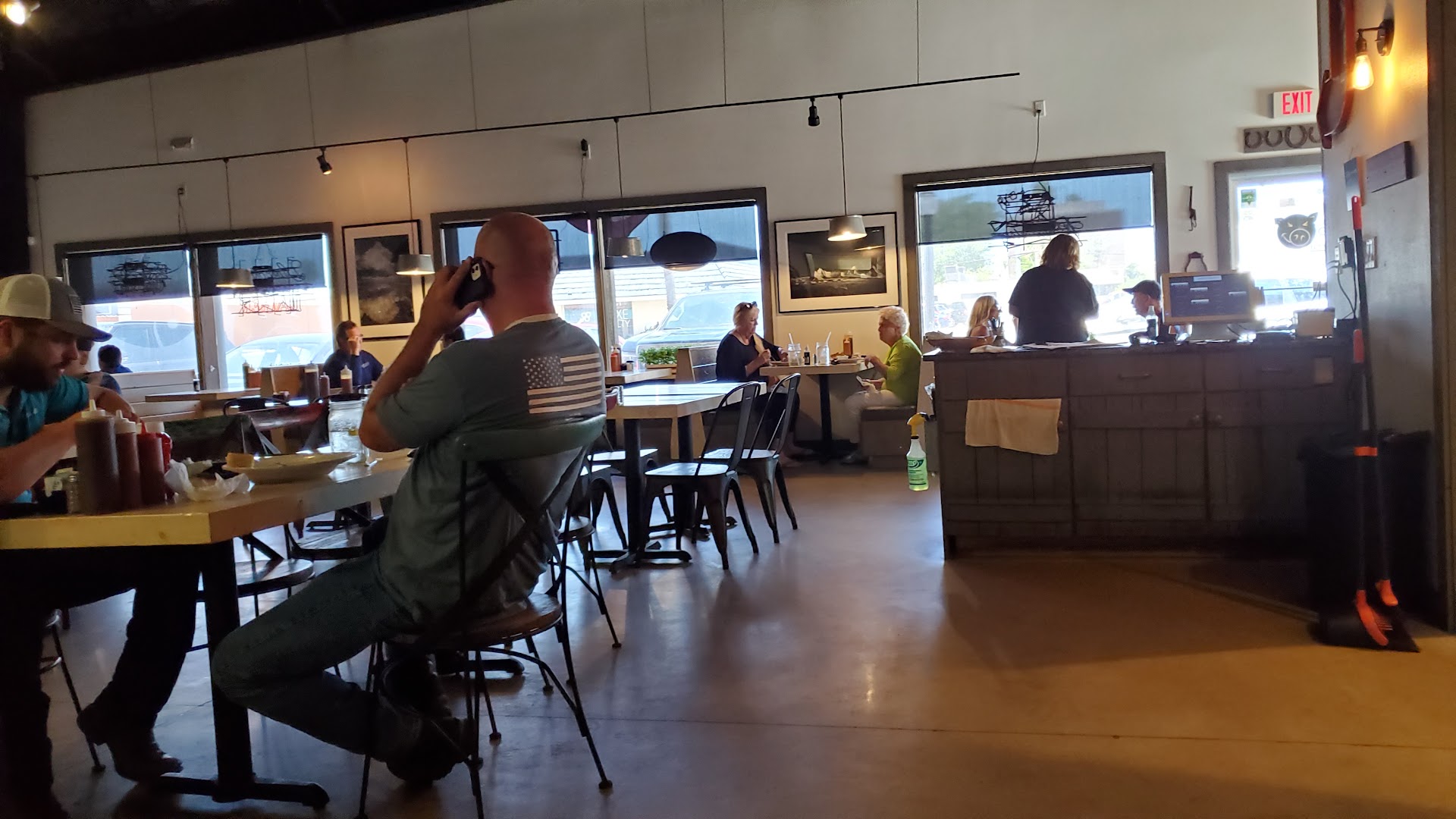 Read moreWell, it's usually a good sign when the local constabulary eat somewhere. This time, though, I'll disagree. First time, I had a catfish sandwich. It was good but it's a BBQ place so I had to go back for the 'que. Got the pulled pork sandwich with slaw & collard greens. Had the slaw on the side because you never know how high that meat will be piled. Good call. Big stack of pig meat on an actual non-hamburger bun. It was solid, if a bit bland, and stayed together throughout while absorbing a lot of sauce and thus preventing a messy eating experience. But let's address the sauce. 3 kinds, sweet, hot & Carolina style mustard-vinegar. The hot is not. Good flavors in all. And you'll need them as the meat is cooked & served without, i.e., dry. Sadly, it required two dosings to keep the meat & bun swallowable. Not much seasoning on that pork, either. And it was barely over room temperature when it arrived. The collard greens were plenty hot. A little bitter, nowhere near as good as my last (and first ever) time experiencing them. A possible clue: the water has a bit of a metallic/salty note to it. Might this have affected the greens? After two stops I don't see a third. Not worth the cost ($ 11) for...