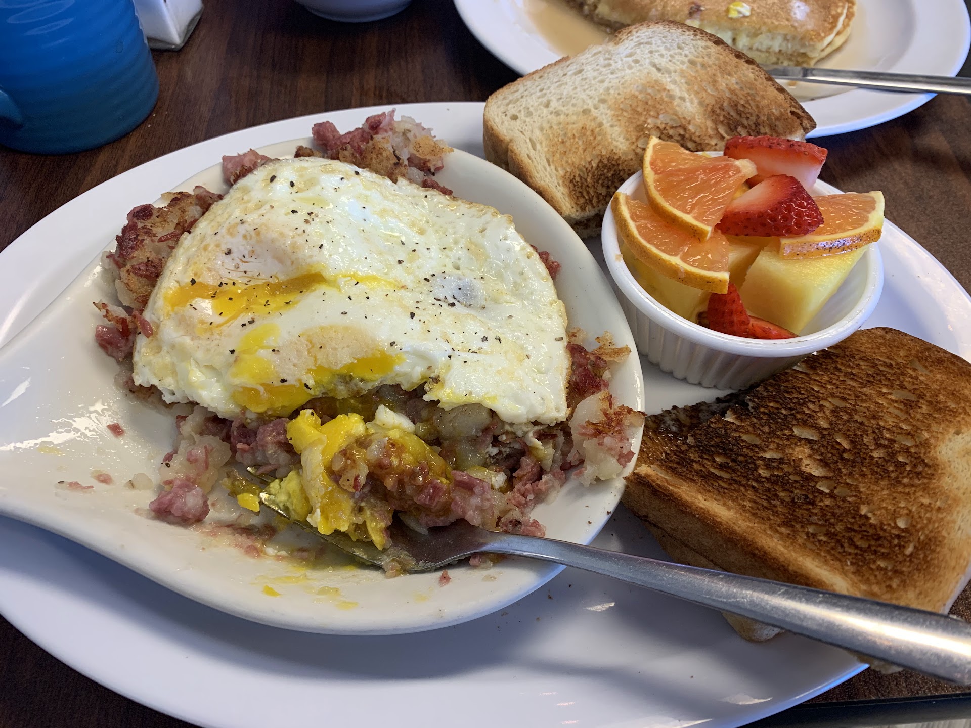 Read more3/19/2016Visiting Venice for a concert. Saw Flapjacks on TripAdvisor. It was right around the corner from Motel 6 (look for my review on it). This restaurant is in a small strip mall and it is very small itself! Only about 10 tables so go early. (plus a few outside) We got there a bit after 9am. Acknowledged right away (yay) and sat down. Friendly staff and our order was put in fast. It can be a long wait for your food, maybe too long. Hubby and I got two eggs with toast, fresh fruit cup for him and grits for me plus toast. Toast looked like it had been grilled...really yummy. Everything was hot and the fresh fruit cup was real fresh fruit! Nothing mushy about it. Grits were excellent but watch the temp, very hot. My eggs were over easy and I had ordered medium but still good. Staff was attentive to people waiting outside for tables...esp the young man. Good place to eat...clean, new carpeting and well...
