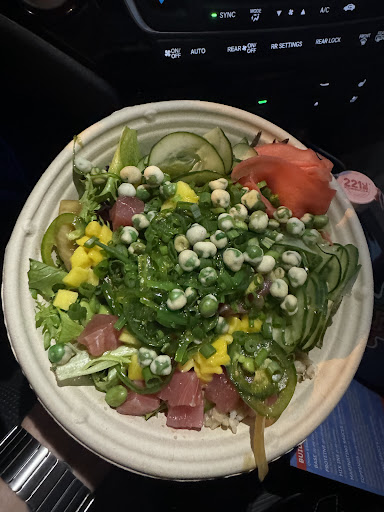 Awesome spot for really fresh fish and ingredients. I've been driving by this place for a few months now, and finally had the time to stop in and grab a bowl. Start with your base: white rice, brown and rice, or mixed greens - or in my case, a little bit of brown, a little bit of greens! Then a whopping three proteins! I took the owners recommendation, and went with the Ahi Tuna for all three of my scoops, and they toss it in the sauces of your choosing! I chose the slightly spicy fire habanero and the traditional poke! Both really incredibly delicious. Then you get your choice of toppings: I chose raw cucumbers, pickled ginger, seaweed, salad, mango, edamame, pickled cucumbers/radishes and jalapeños for a little kick. All incredibly well put together, incredibly fresh, and so delicious! Chose the fire cilantro, vegan dressing topper, and a little bit of spicy mayo on the side just for some fun. And walked out of there for $16.06 with tax, for an awesome dinner!