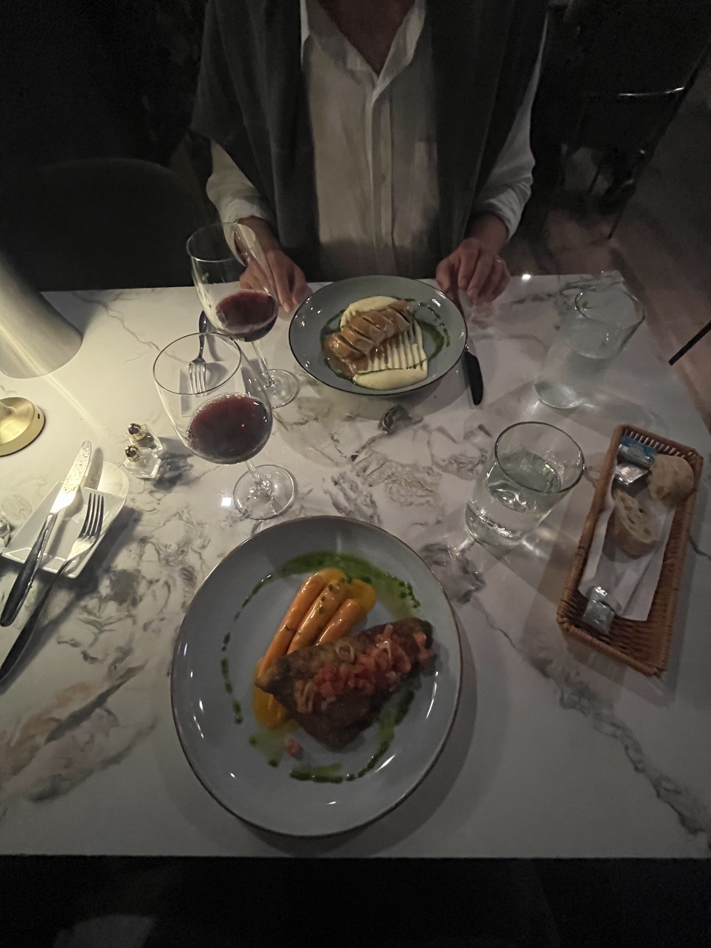 Read moreWent for my motherâs birthday this evening. Had wanted to go to their previous location, though weâre not able to get in prior to them closing. Was very excited about going this evening. I emailed the Friday before they started taking reservations, asking when I would be able to make a reservation on Sunday, when reservations opened. The next day I received a confirmation for my reservation. Was very impressed with that level of customer service. Arrived, hostess was very polite and kind, seated right away,. When ordering my entrĂŠe, the duck, I asked if there were any raw onions due to an allergy. The server responded no, with almost an eye roll. We were not even halfway through our cocktails, when asked what we would like for our next one. Our bread arrived and was told that part was for the starter we ordered as well. Not a big deal, just felt a little unnecessary. Then our entrĂŠes arrived. My motherâs was excellent. However, my duck was so tough I sent it back, and although my father did eat his duck as well, he could not chew half of it. The server said that she had passed on my concerns about the duck, however, the chef and obviously a member of management walked past our table 3 times not once addressing the issue. Cocktails are excellent, everything else not...
