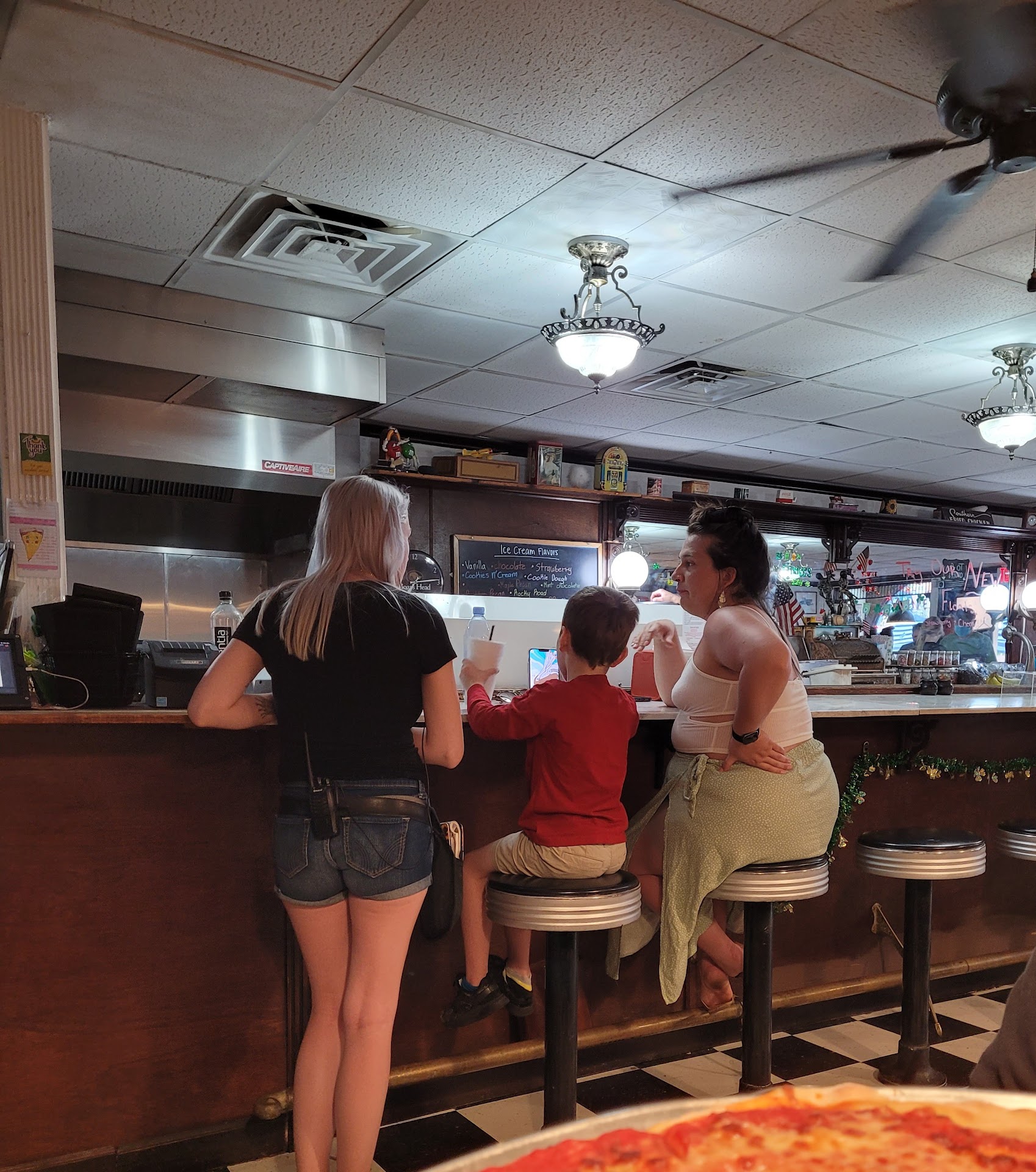 Read moreMe and my party of 6 were sat in the back room which is a little narrow and not the best area for claustrophobes but kind of cozy and efficient for the current COVID situation. It took about half an hour for a small basket of fried pickles and an hour for the rest of the food to arrive. The kids spaghetti wasn’t spaghetti but just pasta with tomato sauce on top and not so tasty. The pizza knots do not belong in the starter section of the menu, the portions are to big so by the time you finish them you are either too full to eat the main course or almost full. The knots were soggy on the bottom from the sauce but other than that the food was pretty good. The coffee kahlua milkshake was tasty, the milkshakes are somewhat a main attraction of this place. The ice cream was really good and would recommend saving space for. This place serves quick walk in lunch food but the serving time does not show it. The server with the blonde braided hair and the sleeve tattoo was good, asked a couple of times periodically if the food was good but at first gave the beers unopened with no bottle opener to open them which isn’t a bother. Overall, the food, ice cream, and milkshake saved the soda fountain from a 3 star, service was pretty good but the serving time and fried pickle portions were not so good which prevented a...