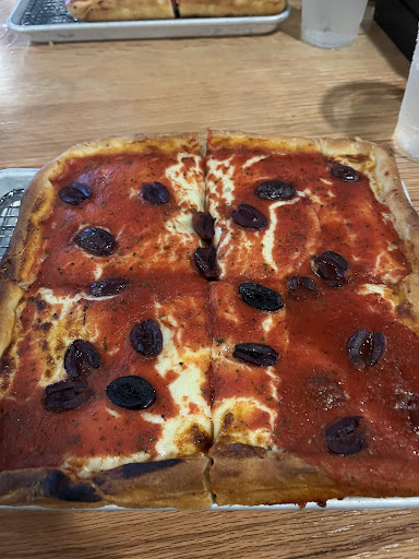 We’ll do this review in steps: 1.) My friend and I arrived at the upstairs patio around 4:30pm. We asked to be seated inside downstairs, because it was about to start raining. We were told inside was closed, so we were sat at the bar on the upstairs patio (because the manager “didn’t want the servers having to go up and down the stairs”). 2.) We waited about 10 minutes to get menus and for our order to be taken. At this point, it is raining and we are getting soaked. We then asked if we could, once again, sit inside. We were told to move downstairs and sit wherever inside. 3.) Once inside, we did not have a server and had to ask a different person for help each time to get menu’s, silverware, and eventually place our order, despite the masses of wait staff standing around, rolling silverware and chatting amongst each other about how much they hated the restaurant. 4.) When I finally placed my order I asked for a veggie works pizza, with added black olives and extra sauce. What was brought to me, about 25 minutes later, was a pizza with just Kalamata olives. No veggies at all, just olives, that weren’t even the kind I asked for. At that moment, we had waited so long for food and I was so hungry, that I just ate it, rather than sending it back and having to wait another half an hour for food. BUT, I took a picture of my pizza so that I could prove that I shouldn’t have be charged for veggie pizza when what I received was a kalamata’s only pizza. (Pizza pictured below, for reference.) 5.) We also ordered garlic parm fries. They were soggy, clearly frozen, cold, and just dusted with parm. 6.) When the check arrived, (which had to be provided by the bar “because we were at the bar upstairs and it was impossible to transfer it to a table”), I was charged $3 extra for my “added toppings.” I then proceeded to explain to one of the many different servers that my pizza was not in fact a veggie works with added toppings, but just an olive pizza, and that I shouldn’t be charged extra, when I didn’t even get the basic toppings. The sever claimed that the $3 was for the “extra sauce.” When I continued to try to explain that my pizza wasn’t even the original veggie pizza that it was supposed to be, much less an “added toppings” order, the server said “the manager will be over shortly to talk about it and explain.” 7.) 20 minutes later, the manager, who was behind the bar directly across from our table, still had not come over. By that point, my patience had run out, so I ended up just paying and leaving in order to get on with our evening.