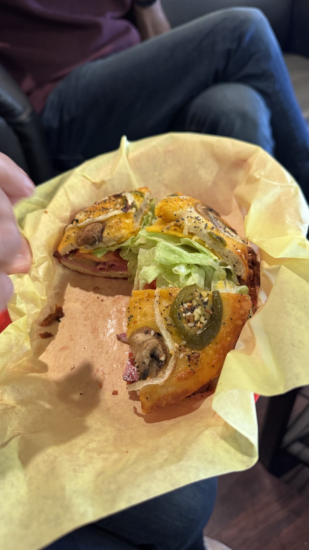 The four cheese with jalapeno, toasted with cream cheese. It hit all the notes: crispy, savory and creamy. 5/5
