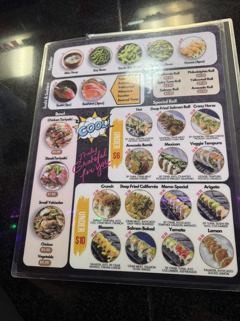 Food: I tried the rainbow roll, Ichiban roll, Mama roll, salmon nigiri and the gyoza. The fish here didn't really stand out in any way. It wasn't smelly or bad quality, it was just flavorless and textureless. The shrimp was on the better side for the price of the restaraunt, and I think the tuna was the letdown - it was chewy and slightly old. The gyoza was pan-fried, a little soft/chewy and ultimately not very flavorful. As for the menu, there are a decent amount of non-traditional rolls, and the place does not overdo it on the sauces, which is nice. However I almost would have liked to have more sauce options to help with the flavor of the sushi.
