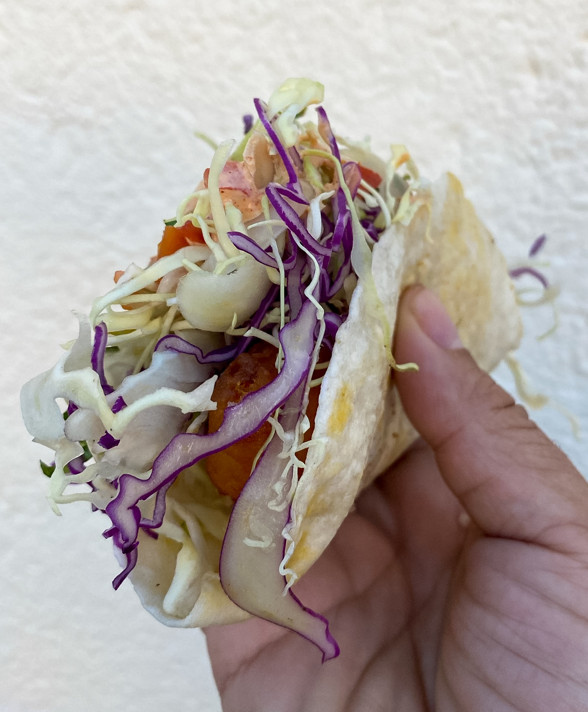 You may also enjoy La Parrilla's take on the "Baja-Style Fish Taco" ($4.95), as here the generously-sized flaky white fish filet is covered in an ultra-crunchy golden fried batter, and then dressed with pico de gallo, sliced avocado, bitter strips of red & white cabbage, and a punchy chile cream sauce. A lightly grilled tortilla is just sturdy enough to hold the taco's bulging contents in place for...