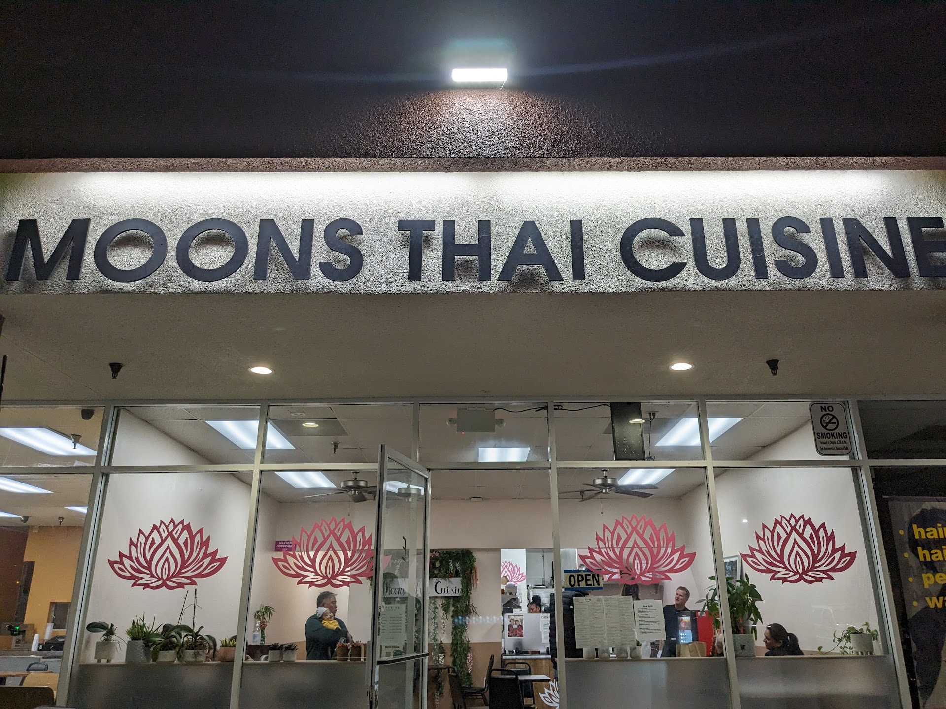 ย ย ย Read moreHey there, I just moved to Ventura a few weeks ago. Joined Nextdoor. Someone recommended Moons Thai that recently opened. I am always in search of great Thai food. I work long hours so my son and I unfortunately eat out often. I am so happy I did. Yum! I ordered online quite late. They close at 9PM and I think I put my order in past 8:30. I showed up just before 9:00 and my order was perfect! I ordered my food NOT spicy because my son has stomach troubles. They made a point to ask me if I wanted to spice it up with a side of chili sauce. Yes. Thank you! Everything was spot on for my taste. I ordered the Pad Z ewe. Chicken saute and pork gyoza. Everything tasted fresh. I have not actually been to Thailand so I don't know what is or isn't authentic but this is...