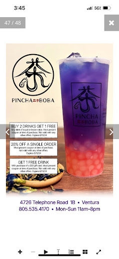 The Boba: The boba is better than Boba Guys in Topanga. Now, i live in camarillo and i used to drive 50 min to topanga canyon because I can't bear to spend $10 on sub-par boba in the area. Might as well drive further down to get something you love. Well, Pincha's boba is perfectly cooked with just the right amount of sweetness.