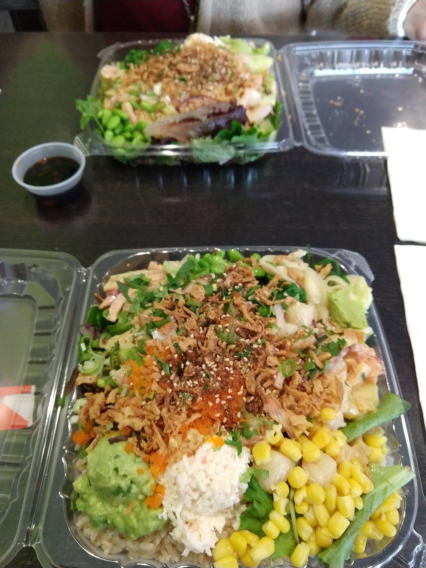 Read moreI've never been so disappointed. The large bowl is such a scam, yes I want more meat, that's probably what I'm paying for, but lord was the rice lacking. Not only did it not fill the entire tray, but it's like eat toppings with your side of rice. My lord, the sauce also completely drowned the bowl, and probably the worst eel sauce I've ever had. I've never had poke that I didn't want to devour then and there. It's still sitting in my lap and I just feel disappointment, like my rating is going down the more I write. Oh yeah, forget how small the rice is, the amount of toppings are smaller. You'd think you'd get more rice, and toppings for 5 (mini) scoops of protein. Also, workers looks like they hated their lives, so, I hope working conditions are okay. This is getting too long, I might go to the store and buy more...