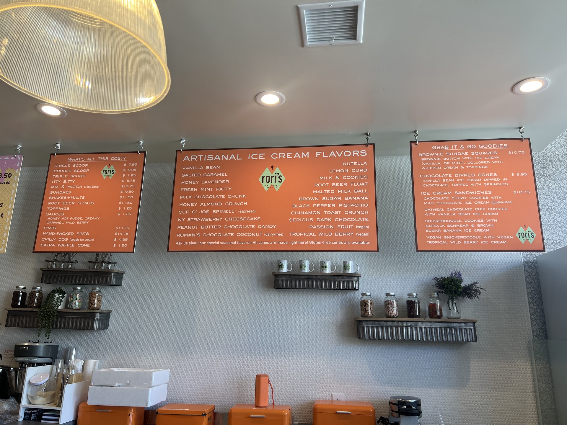 Nestled in downtown Ventura on Main Street near Palm, Rori’s Artisanal Creamery is a delightful find. Despite its cozy size, the ambiance is inviting, thanks to ample natural light streaming through the large front windows and vibrant decor.
