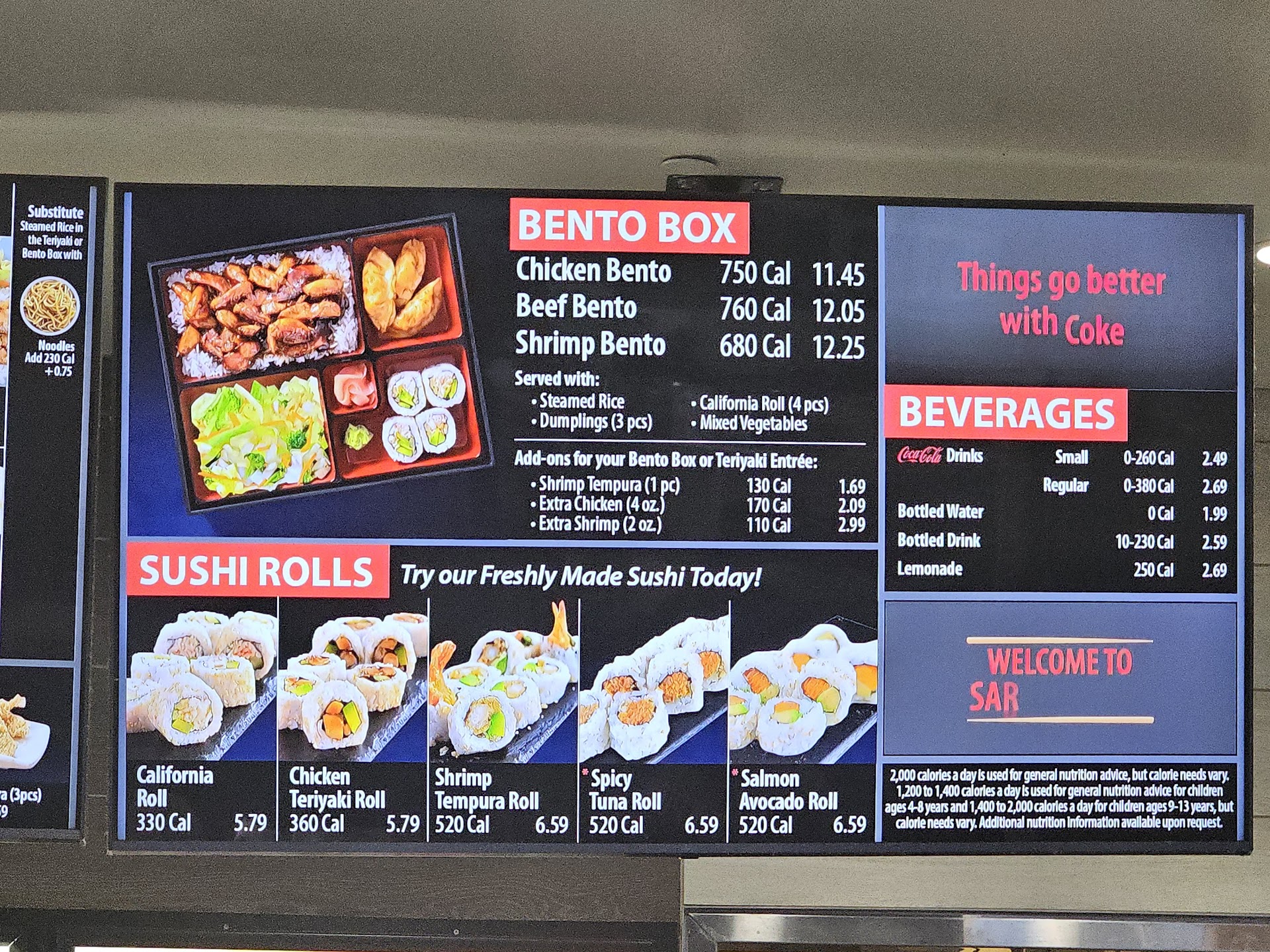 Read moreMy son and I both ordered the beef bento box. Everything was FLAVORLESS. They gave us free Siracha sauce, which I can't have, so I asked for teriyaki sauce and they charged me 50cents! the vegetable mix had 0 taste. the beef had very little taste the California rolls no taste so to try to get some flavor I poured the teriyaki all over everything. But even the teriyaki sauce was weak. Watered down maybe. I ordered a side of shrimp to mix with my beef. I opened the container and they smelled so bad. It was a strong odor. they were old. Save your money. eat somewhere else. I don't know what they are doing back there. I swear maybe everything gets soaked to death in water. it was our first time and will be our last. 4...