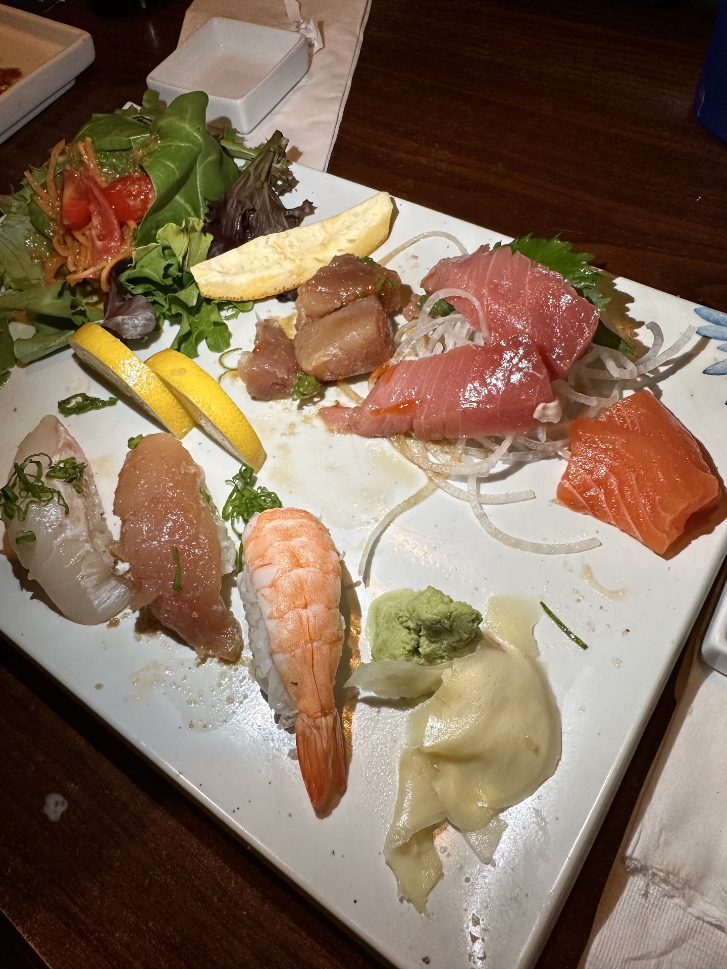 My coworker can be a little picky (because she knows good food) and said her sashimi/nigiri was a bit off and the rice was off. I offered her some of mine and said I’d pay for it and have it for breakfast and I didn’t think much of it until my other coworker said his rice had way too much vinegar too. I tried the rice…it was awful. Too strong to even be rice vinegar almost, and all of them already had soy sauce? Then I smelled her fish.