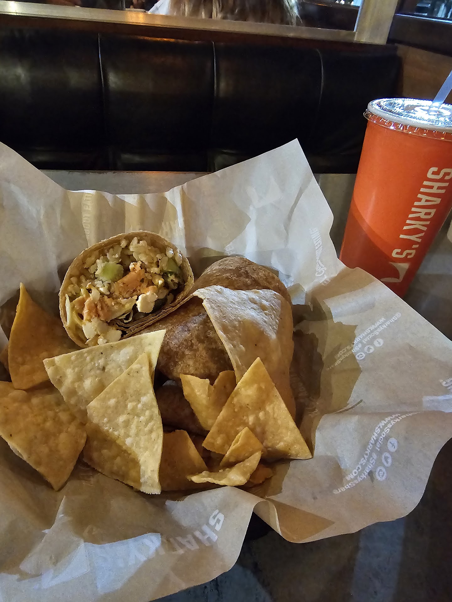 They have reasonable prices, great vegan and meat-eater options, fast and friendly service, good serving sizes, a pretty useful rewards card, and incredible chips and salsa. I love it. Go surf, swim, or run and order the fiesta burrito - it's transcendent. I crave Sharky's with a passion at all times. I order two fiesta burritos every time I go. When I decide to go to Sharky's, but it's already after hours, I become genuinely sad. I'm not even exaggerating. Idk why they affect me this abnormally, but all my friends enjoy it as a Ventura classic as well and I'm sure your experience will be pretty solid.