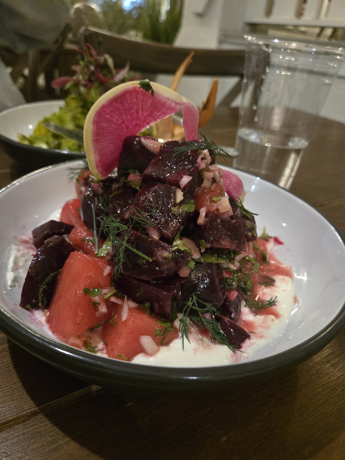 When it comes to the food, it looks pretty...... But just like my gynocologist would say, it may look pretty, however, it doesn't mean you should eat it. The beet, watermelon salad didn't have good flavor. The aguas chile tasted more like mango salsa with...